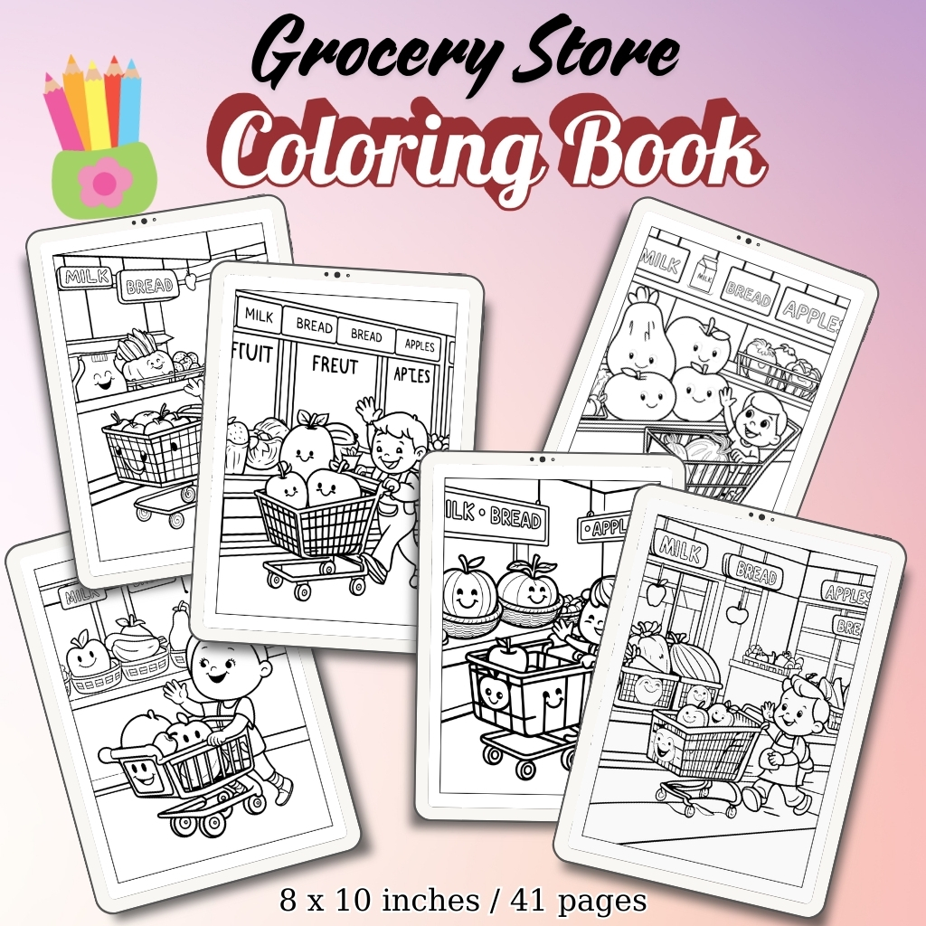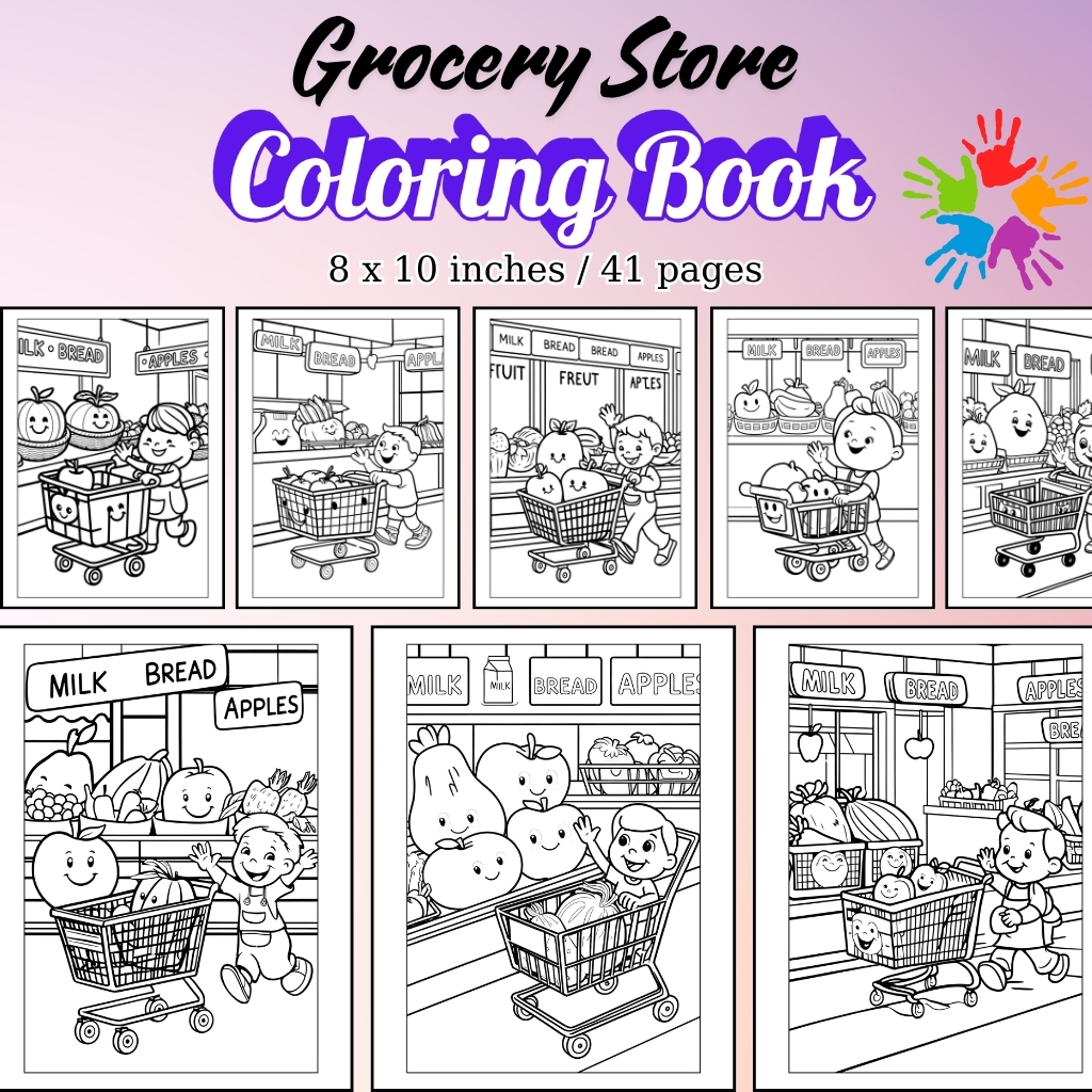 Community centers, camps, or playgroups can use grocery store coloring activities as part of themed events about food and daily routines.