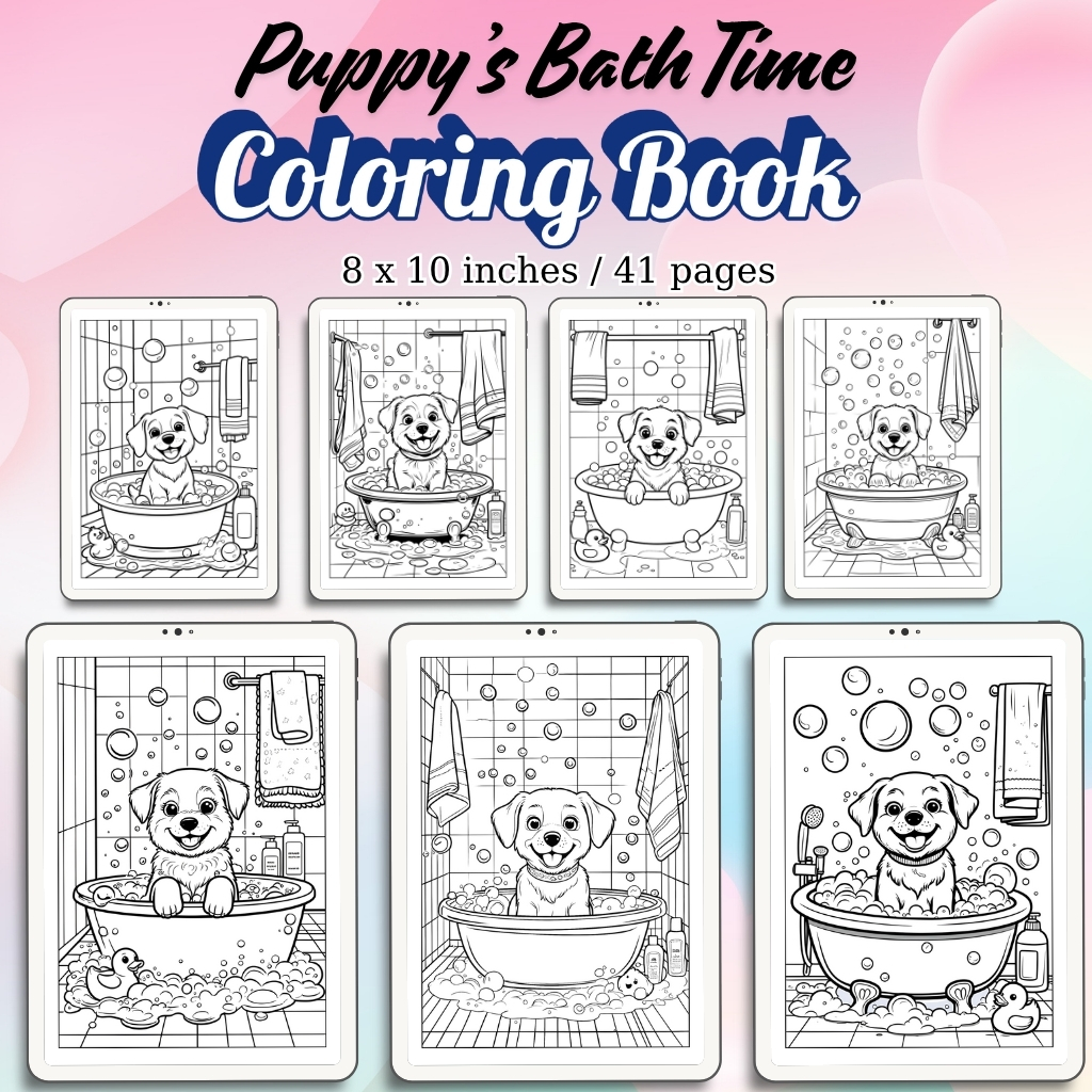 There’s nothing cuter than a playful puppy splashing around during bath time! Now you can bring that adorable scene to life with our Puppy’s Bath Time Coloring Pages / Sheets of Puppy’s Bath Time {Coloring Book}. Whether you’re a parent looking for a fun activity for your child, a teacher searching for classroom resources, or a dog lover who enjoys creative moments, this delightful coloring book is made just for you.