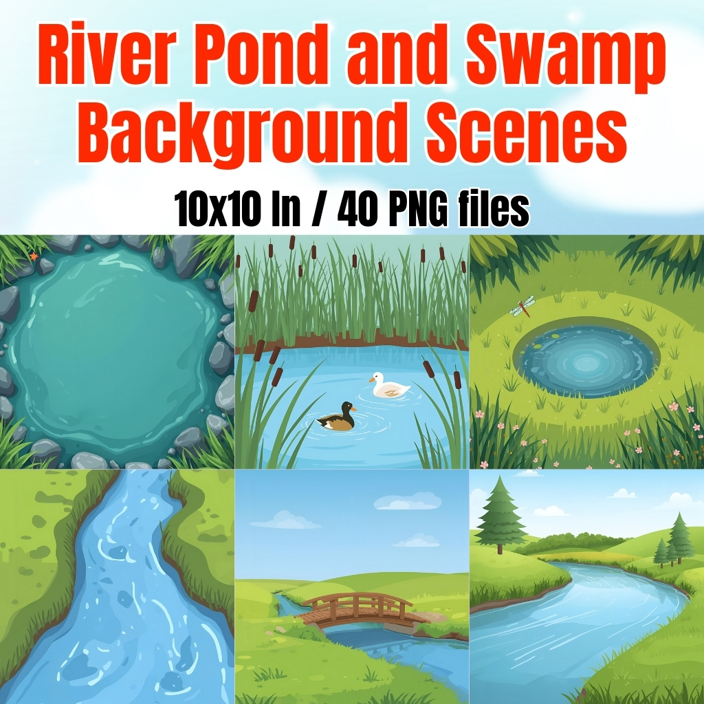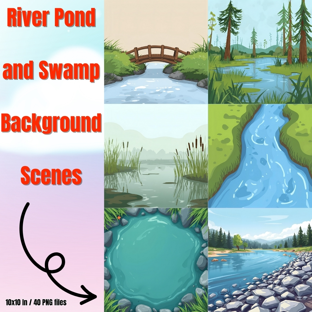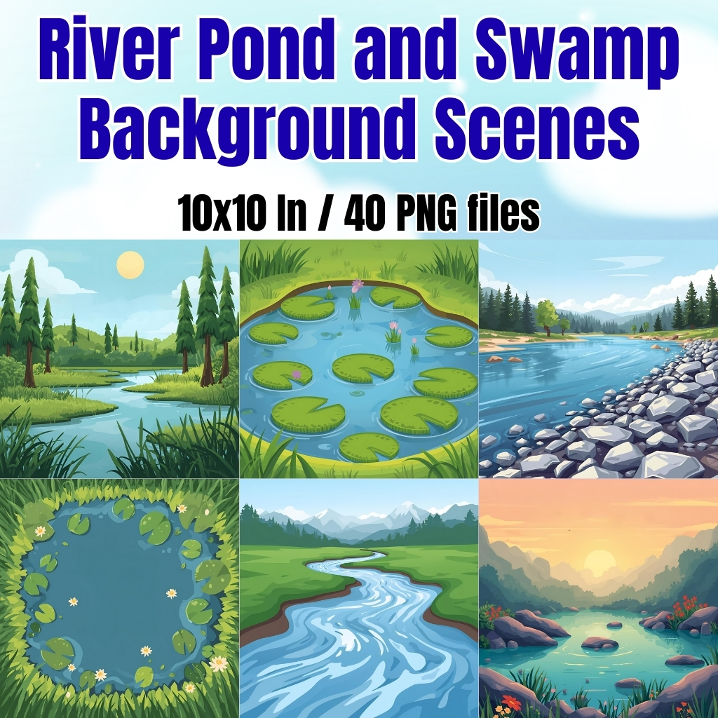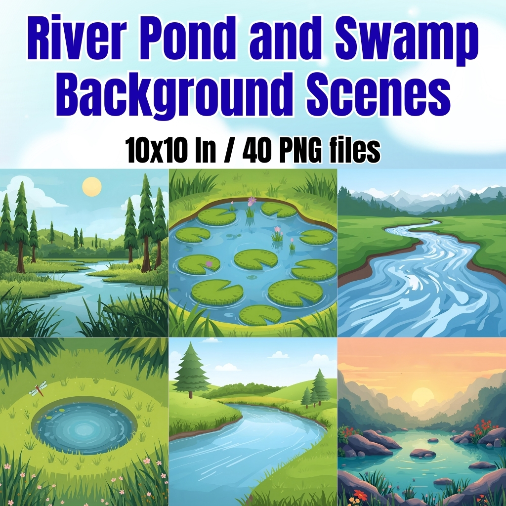 Are you searching for engaging, ready-to-use digital backgrounds that will make your lessons, activities, and projects more exciting? Our River Pond and Swamp Background Scenes are the perfect resource for teachers, students, and creative learners. These beautifully designed PNG background files feature calm rivers, peaceful ponds, and mysterious swamps that instantly set the scene for storytelling, learning, and creativity.