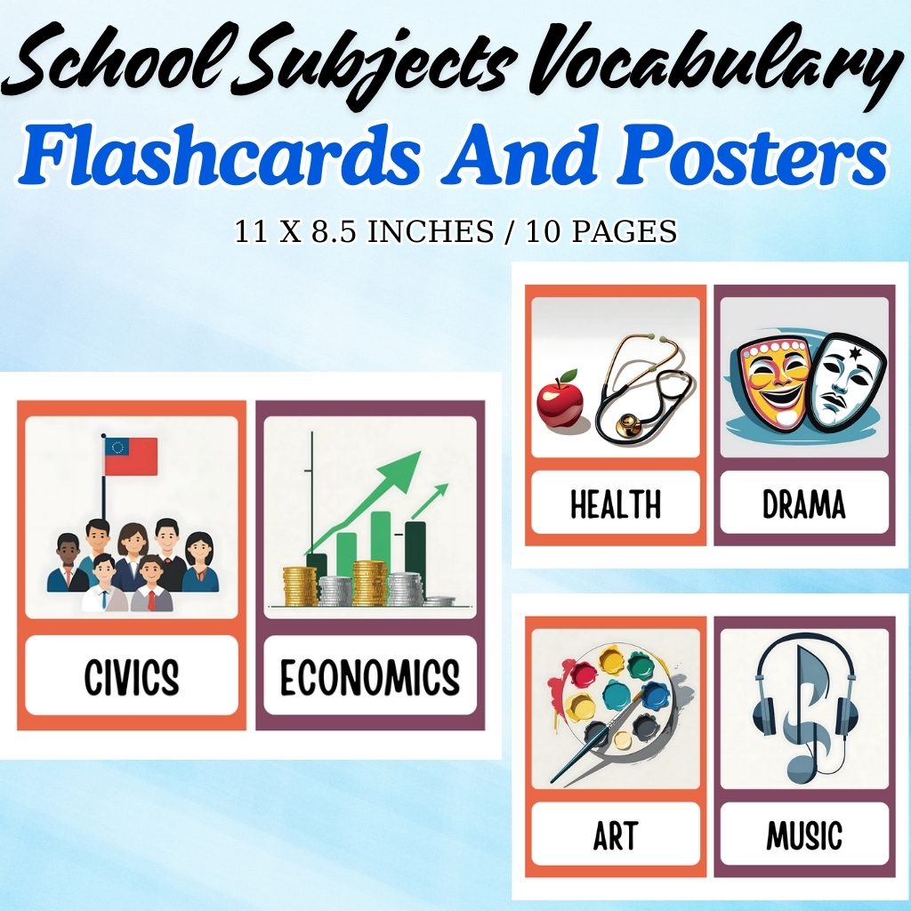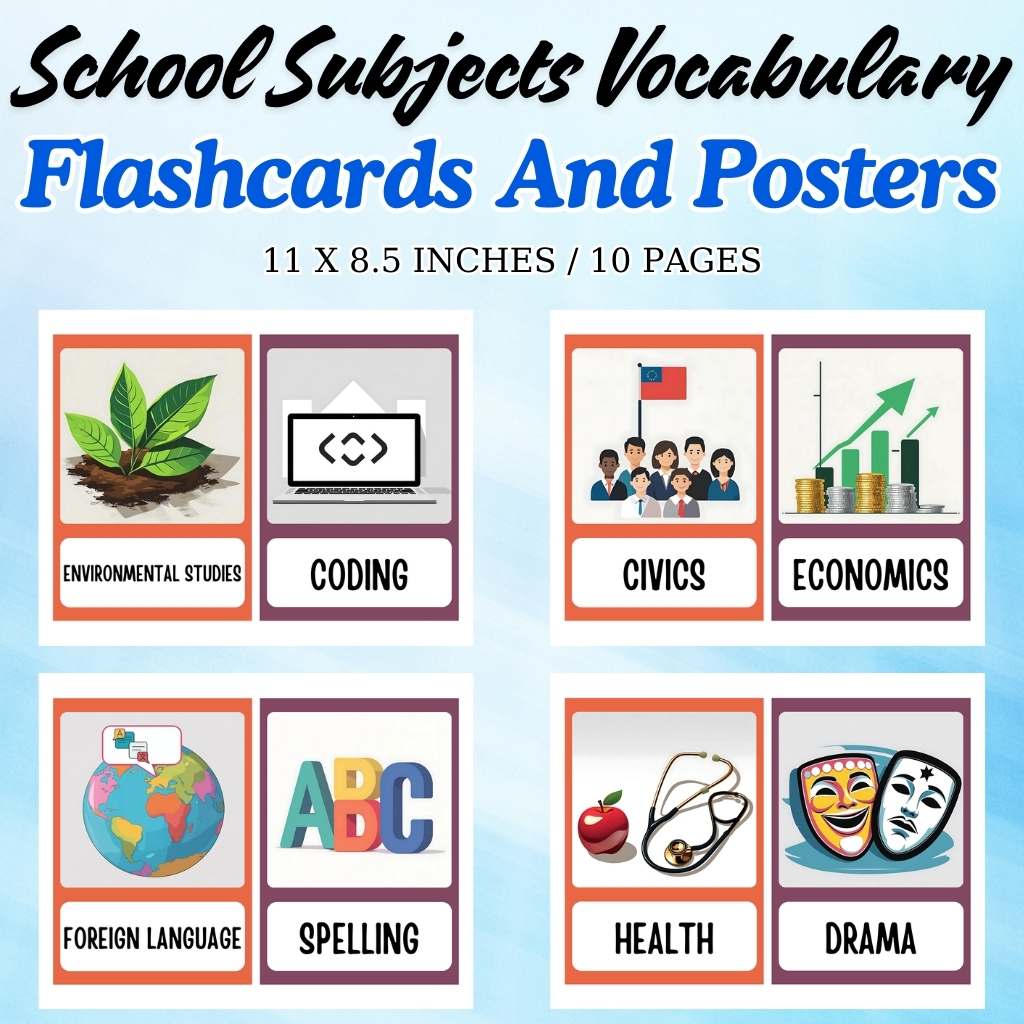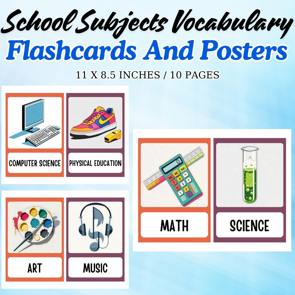 Learning English vocabulary is one of the most important steps for children as they begin their educational journey. Among the first topics students need to master are the school subjects vocabulary words. To make the learning process easier, more visual, and highly effective, our School Subjects Vocabulary Flashcards and Posters are the perfect solution for teachers, parents, and young learners.